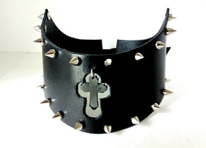 Pendant cross from natural hematite stone adorns the front of the collar. Spikes highlight the gothic style. Necklace can be a great addition to the costume for Halloween or for a rock concert.